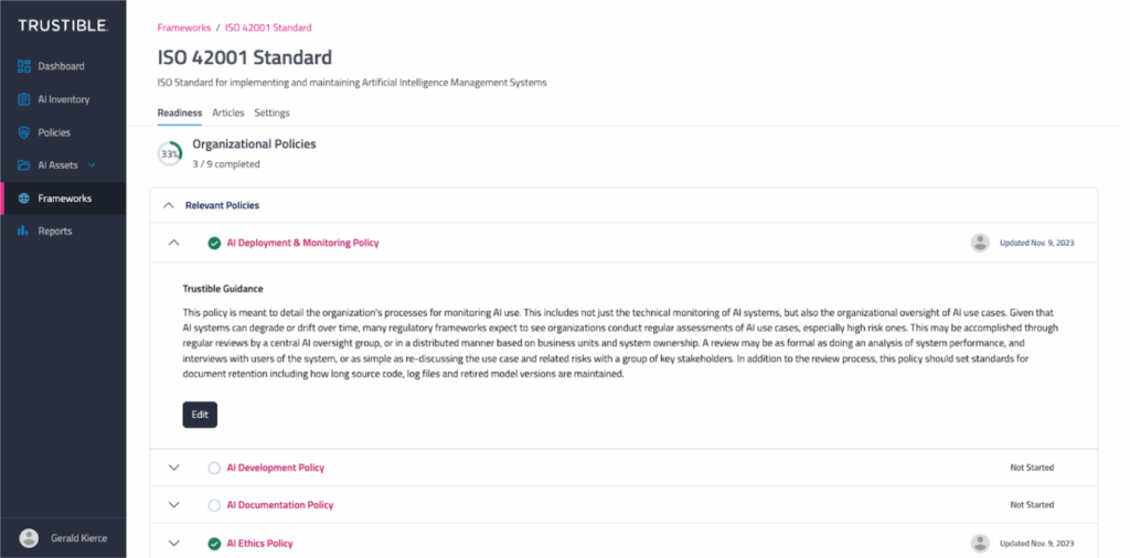 Key Features of ISO 42001 in Trustible’s Platform: