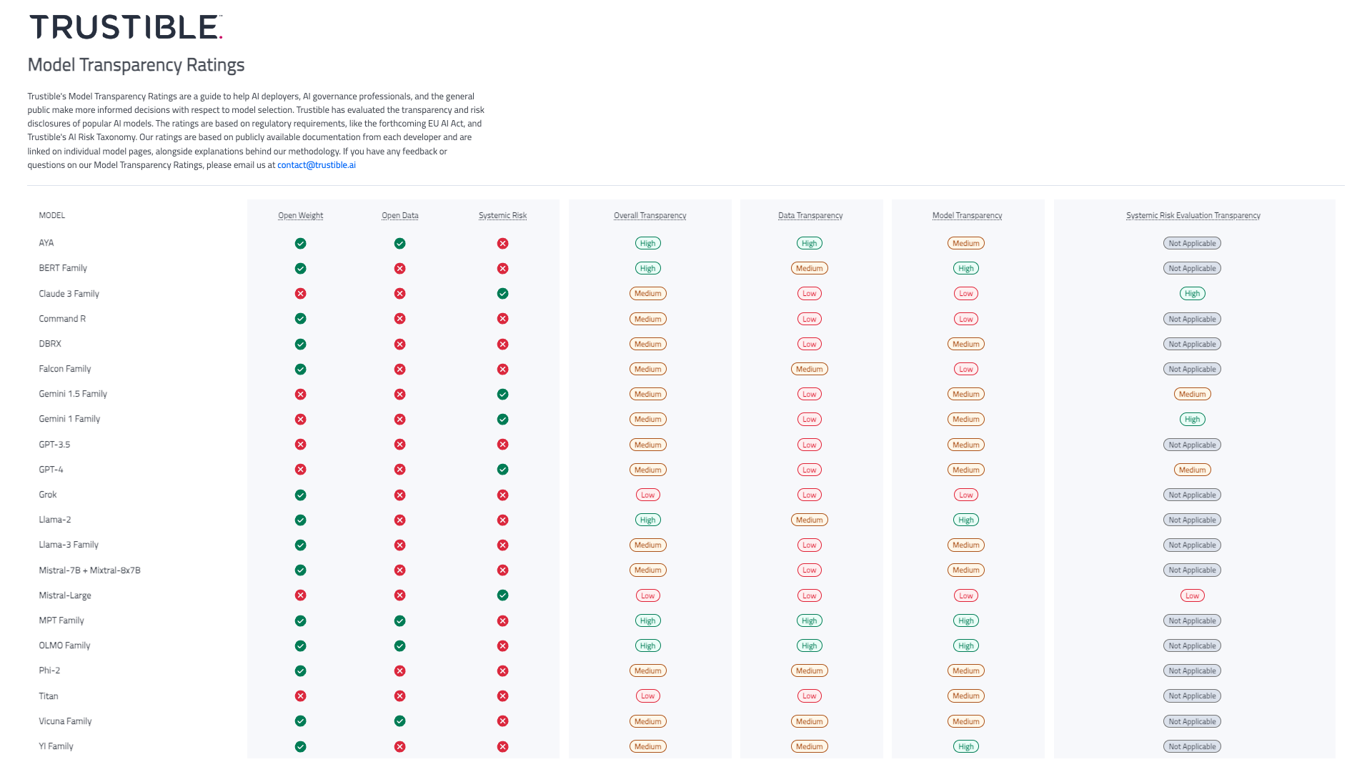 The model ratings are available to the public via this website. To read the full methodology and evaluation criteria, please follow this link.
